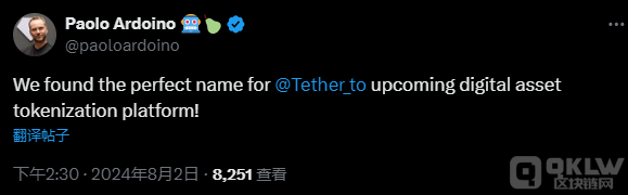 Tether曾表示計劃進軍現實世界資產(RWA)市場。8月2日,執行長再次表示,目前即將推出的資產Tokens化平臺名稱已確定,進軍RWA市場的計劃即將實施。
