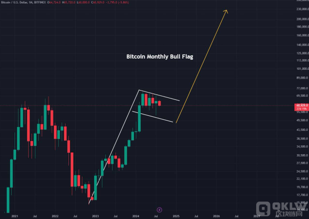 另一位分析師埃爾賈也指出,Bitcoin似乎在月度圖表上形成了牛市旗幟。他在8月4日的發文中寫道:“BTC 巨大的牛市旗幟。Bitcoin的暴漲將成為傳奇!