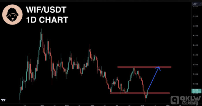 根據(jù) TradingView 的數(shù)據(jù)顯示,WIF 從8月5日的1.07美元低點(diǎn)上漲了66%。在8月7日的交易中,WIF 價(jià)格達(dá)到了1.77美元的盤中高點(diǎn)。這一價(jià)格反彈引起了市場的廣泛關(guān)注。