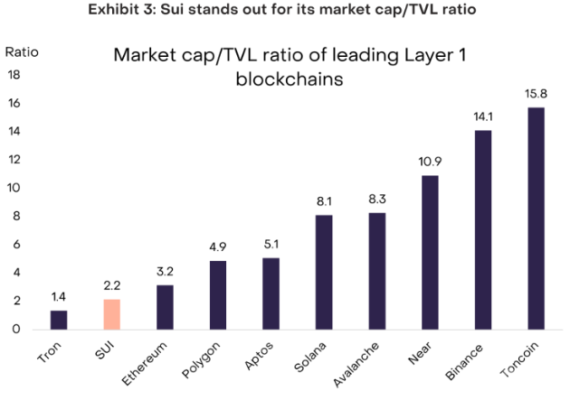 Sui的生態(tài)系統(tǒng)正迅速發(fā)展,支持Decentralization金融(DeFi)、Web 3.0及非同質(zhì)化Tokens(NFTs)等多種應(yīng)用。截至2024年7月31日,Sui的總鎖倉(cāng)價(jià)值(TVL)達(dá)到8.3億美元,市場(chǎng)市值約為18億美元,TVL/市值比率為2.16,顯示出其被市場(chǎng)低估的潛力。