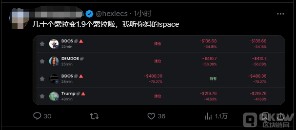 另外更有趣的是,YEAH幣拉盤期間吸走了Solana鏈上的流動性,有用戶投資的Meme資產短時價格暴跌,受到損失的用戶將截圖發布在社媒上并吐槽這場Space活動。