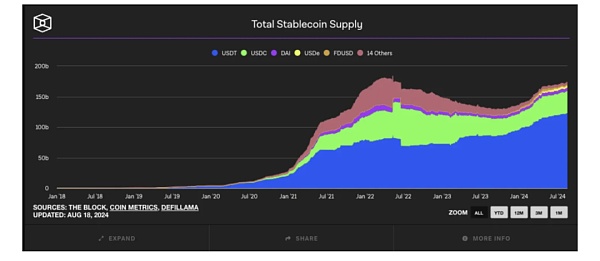 穩(wěn)定幣增長:2024年穩(wěn)定幣發(fā)行量持續(xù)上升,表明市場需求依然強勁。