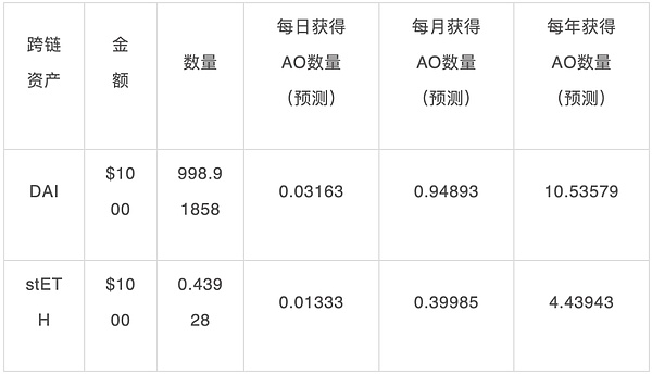 9月8日,DAI挖AO收益預測表