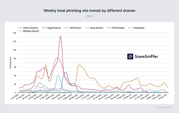 WalletDrainer是一種部署在釣魚網站上,通過誘導用戶簽署惡意交易來盜取加密資產的攻擊方式。2024年,此類攻擊造成約4.94億美元損失,同比增長67%。雖然受害者數量僅增長3.7%(達到33.2萬地址),但單次攻擊損失顯著增加,最大單筆被盜金額達5,548萬美元。