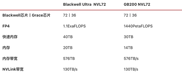 BlackwellUltraNVL72和GB200NVL72硬件參數