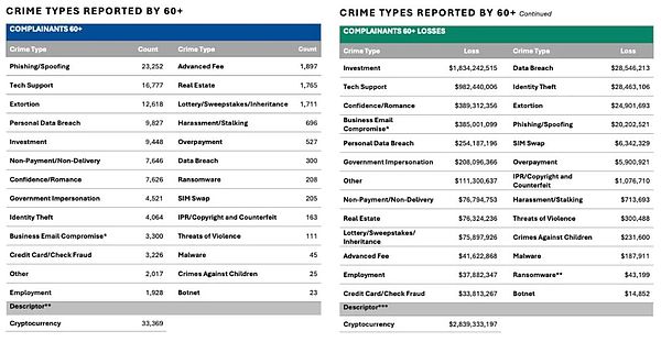 Crypto相關投訴達149,686起,造成93億美元損失,損失金額同比增長66%。受害者中,60歲以上群體占比最高。