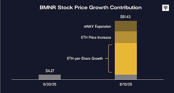 唯一的原因是:股民相信通過 BMNR 股票獲得的“0.01ETH”,最終會比直接持有 0.01ETH 更有價值, 也就是通過持有BMNR股票不僅直接可以獲得其代表的ETH份額,還可能獲得ETH本位的增值。