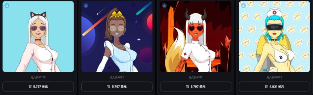 比如一個叫作“元女友”(Meta Girlfriends)的NFT產品,在流通市場上,數百甚至上千美元的價格只是常態。2021年11月,該產品一經發售,便吸引了數萬名關注者。