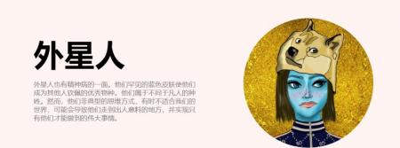 還有一款叫作“無聊女友”(Bored Girlfriends)的NFT產品,在官網的介紹中,制作者為每一個類型的女友都做了介紹。無聊女友共準備發行4444個NFT產品,其中有85%是人類,另外15%中,有一個類別被制作者稱為“雜種”。看稀有率,雜種女友應該是最貴的。