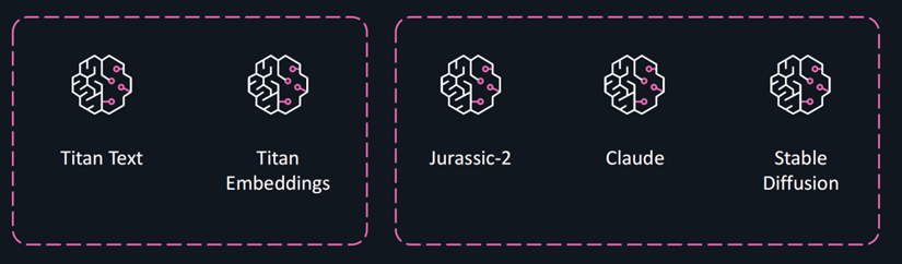 左:來自亞馬遜云科技的基礎模型;右:來自 AI21 Labs、Anthropic 和 Stability AI 的基礎模型