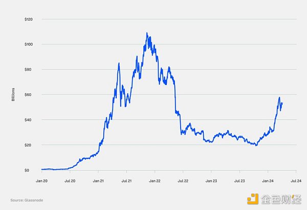 ETH已歷經(jīng)兩個(gè)完整的市場周期。本輪周期始于2022年,自2022年11月以來,ETH上漲了240%以上。本輪周期與2018-2022周期相似,ETH價(jià)格較低點(diǎn)上漲了6000%。
